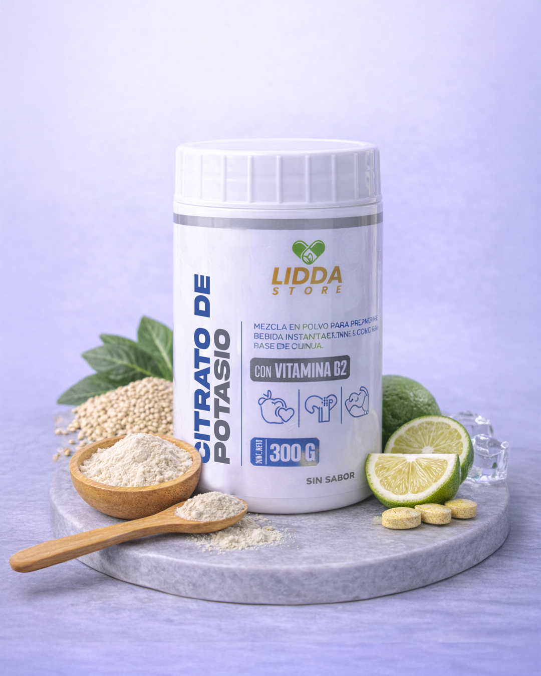 El Citrato de Potasio de Lidda Store es un suplemento en polvo diseñado para apoyar el equilibrio electrolítico del organismo.